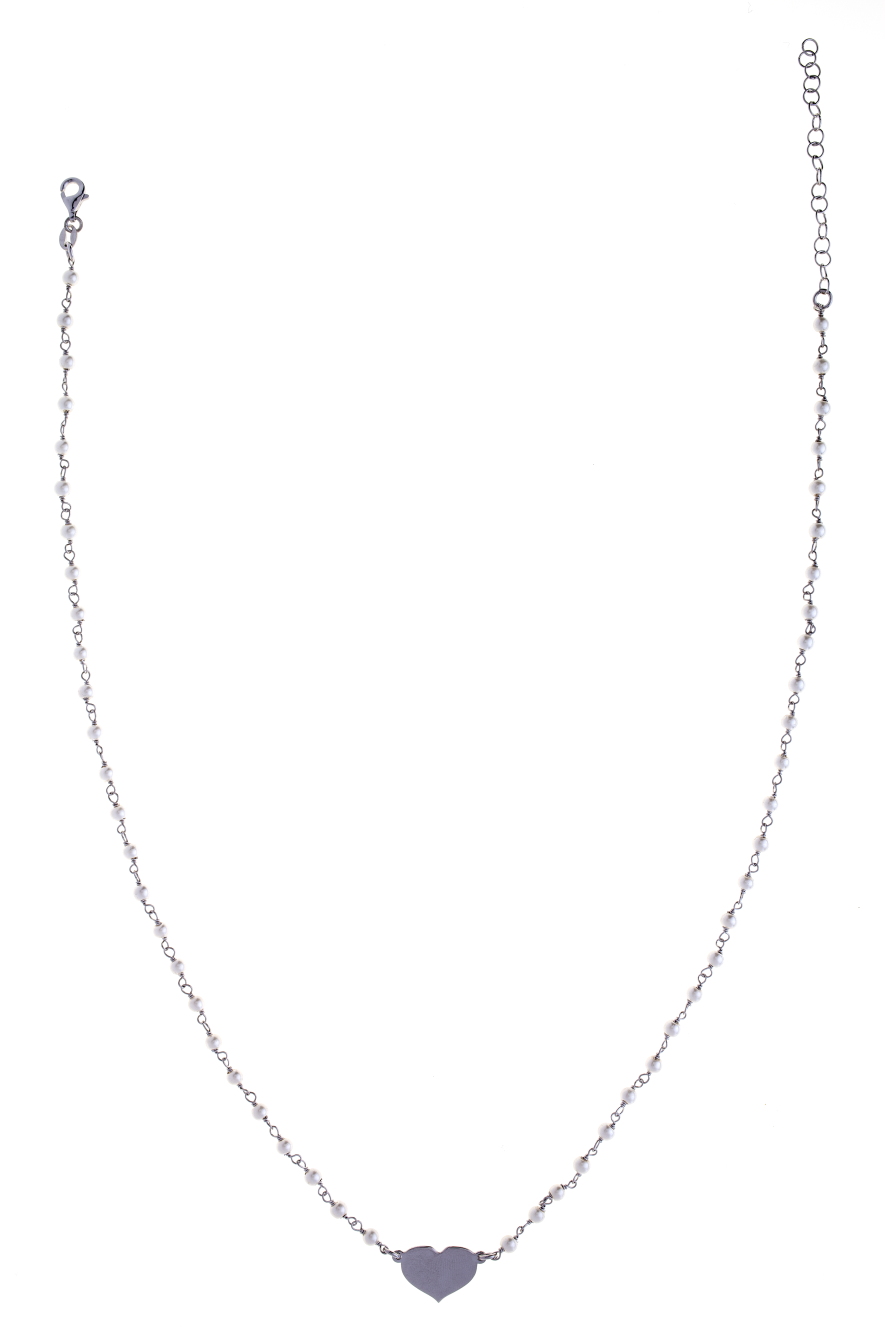 Girocollo rosario Prega&Ama in argento925 con pietre bianche e cuore smaltato bianco - cod.61165