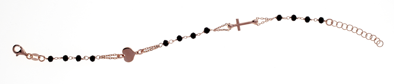 Bracciale rosario in argento925 Prega & Ama con pietre nere -ROSE'-  (Lung. 18 + 3 cm)